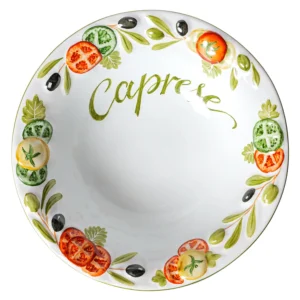 Produzida em cerâmica de alta qualidade, a tigela Caprese é pensada tanto para o uso cotidiano quanto para momentos especiais, trazendo sofisticação sem excessos. Seu design atemporal dialoga com diferentes estilos de mesa, do contemporâneo ao mais rústico, sempre com um toque de frescor e autenticidade.